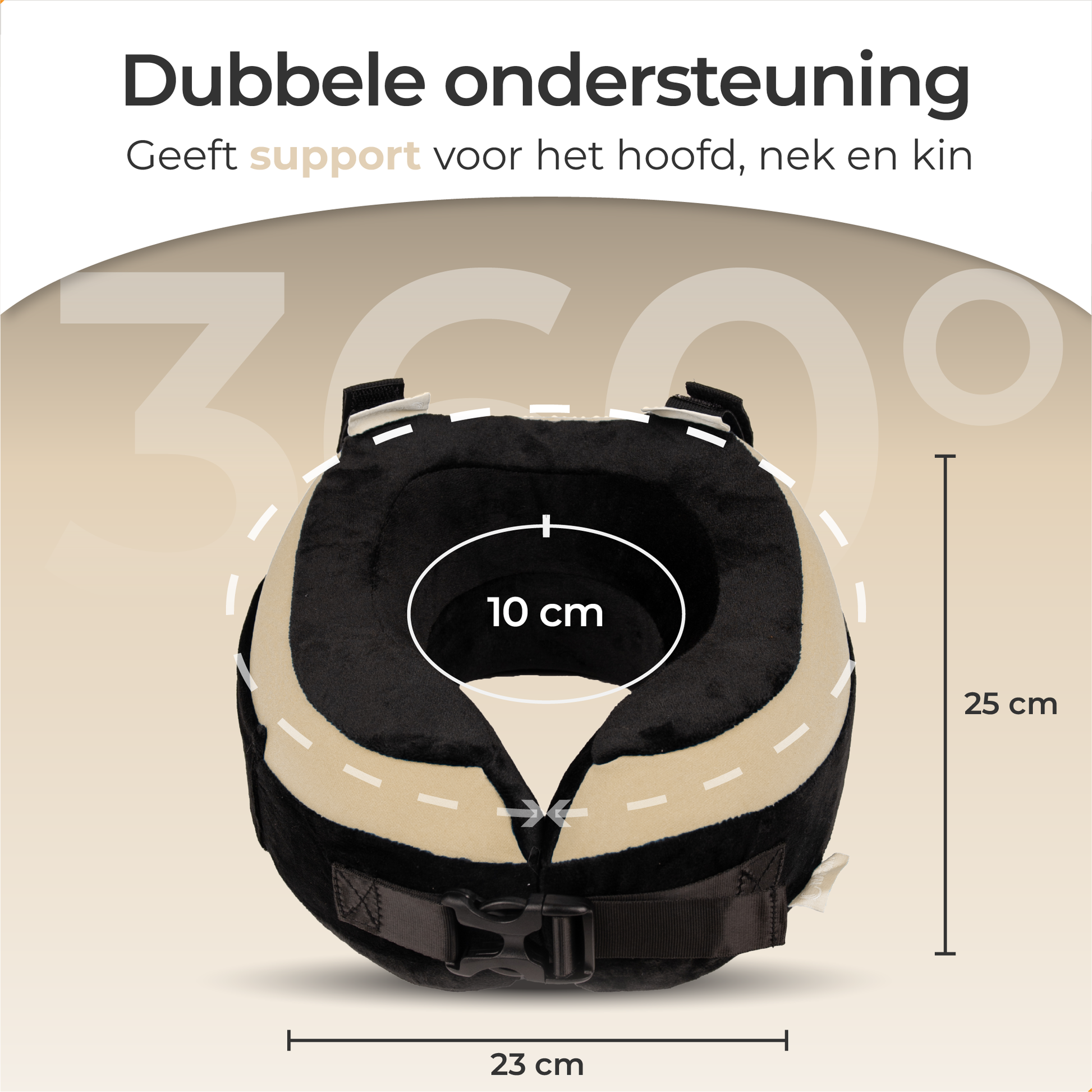 Door dat je het nekkussen aan je stoel kunt bevestigen, blijft je houding tijdens het reizen optimaal. Daarnaast heeft het nekkussen een unieke chin strap sluiting die het nekkussen volledig kan afsluiten voor maximale ondersteuning. De platte achterkant zorgt ervoor dat je tijdens een lange zit een rechte houding aanhoudt.