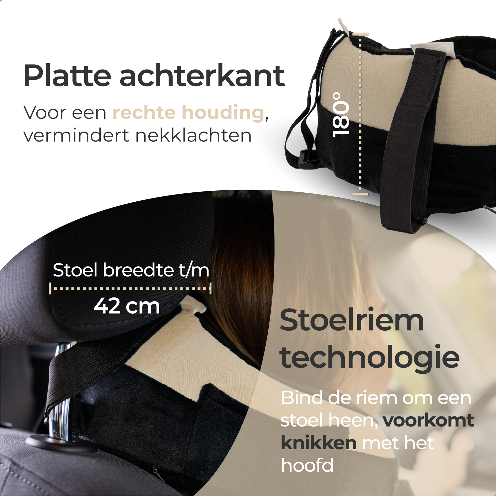Het nekkussen heeft een rechte achterkant, waardoor u een goede houding aanneemt.