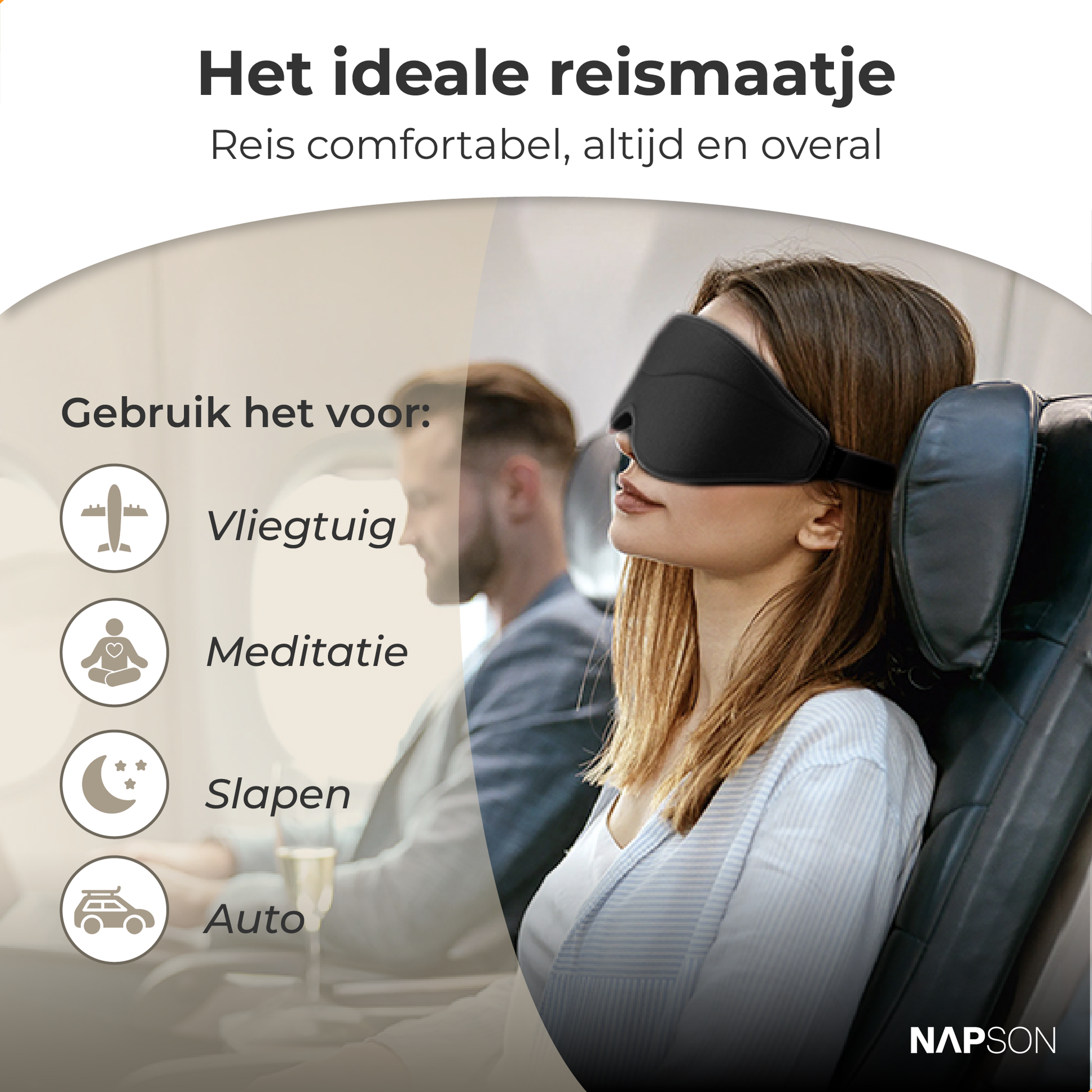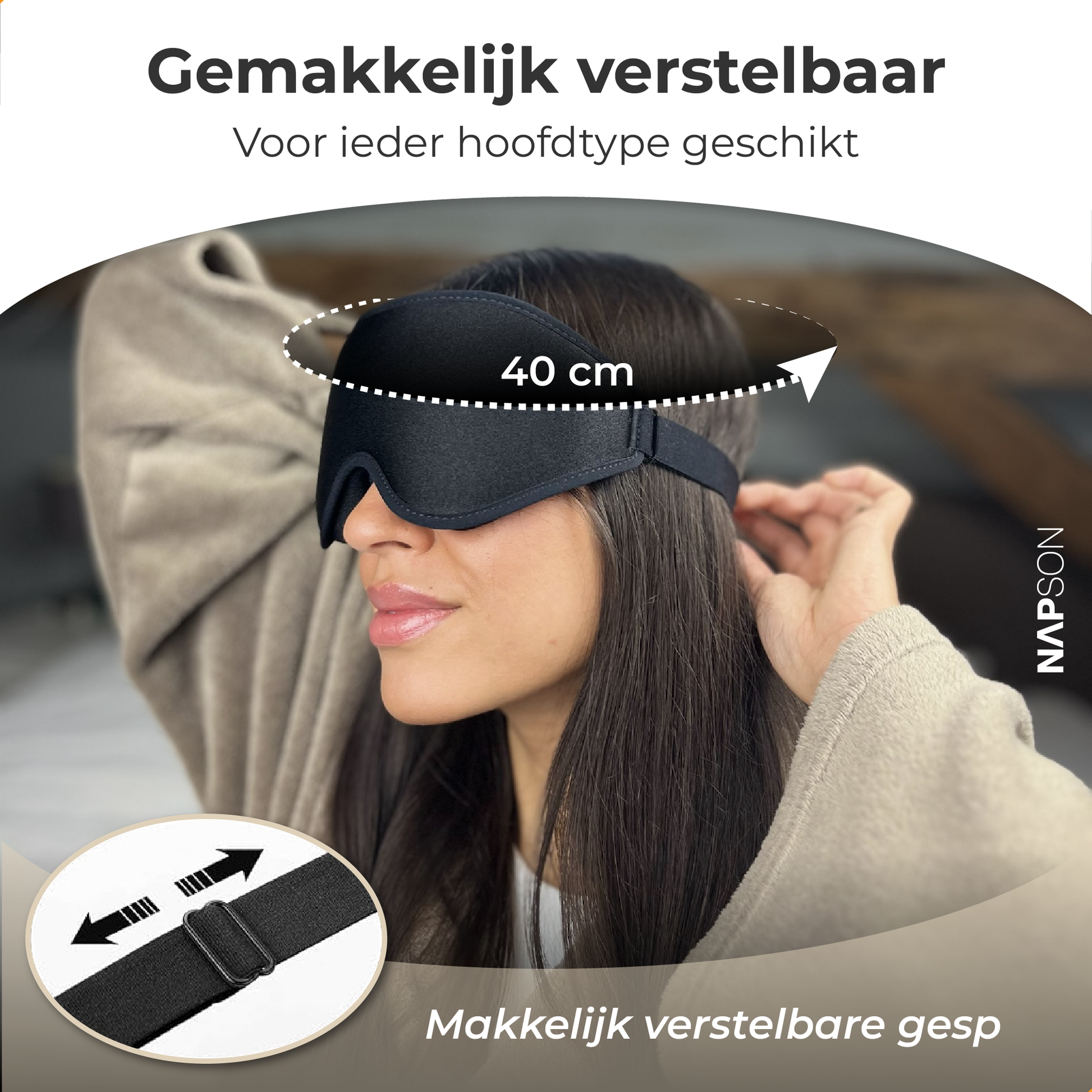 Ons slaapmasker is ontworpen voor echte rust, zonder irritaties. Dankzij de dunne, verstelbare band met gesp pas je het slaapmasker moeiteloos aan je hoofd aan – zonder kriebelend klittenband of losrakende straps. Ideaal voor thuis én op reis. Lichtgewicht, comfortabel en blokkeert het licht volledig voor een diepe, ongestoorde slaap.